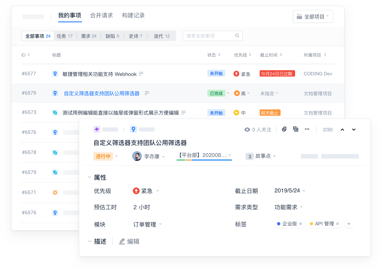 上游关联产品需求、下游关联测试用例及缺陷,和产品、测试联动工作,高效沟通,快速定位开发需求上下文。