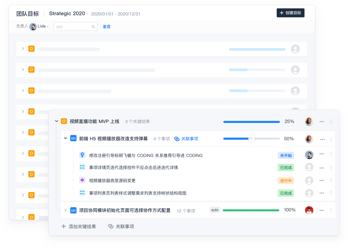 专属 「目标管理」,一个界面即可纵览各团队的关键目标,与公司战略目标联动。关联目标下分解的任务,随时获知目标完成进展。