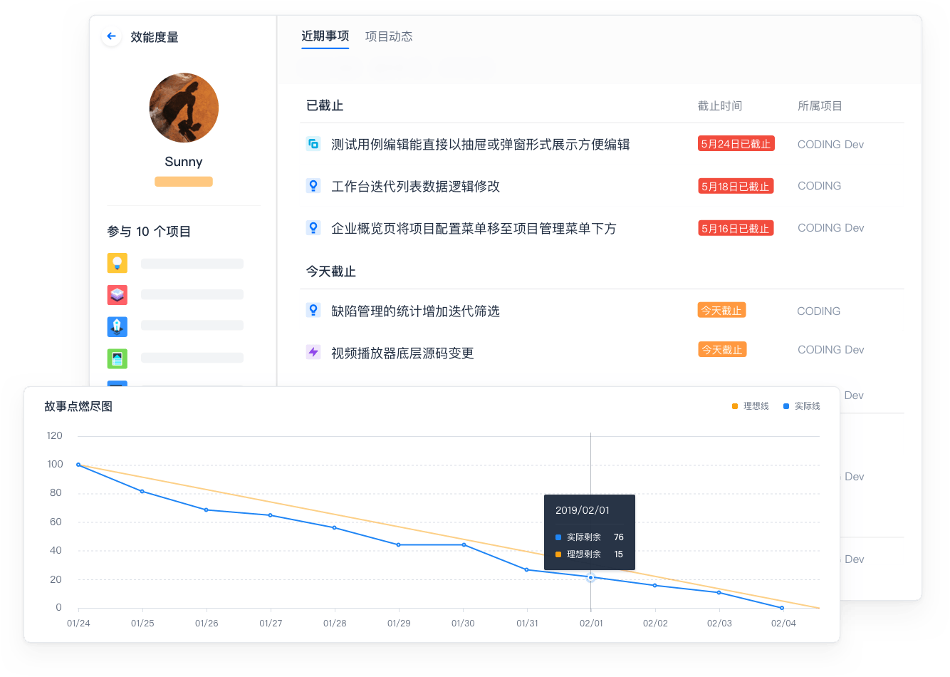 通过任务故事点和工时估算团队成员的人力投入,成员的工作效率和负荷强度一目了然,帮助管理者科学调配团队资源。