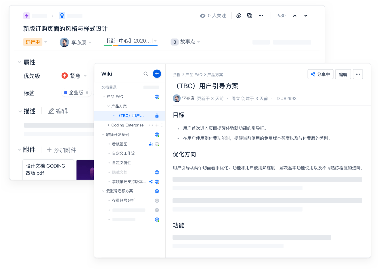 在 CODING 即可完成需求文档的编写与维护、上传 PRD 文件,让需求与产品文档、原型相关联,清晰交代需求背景。