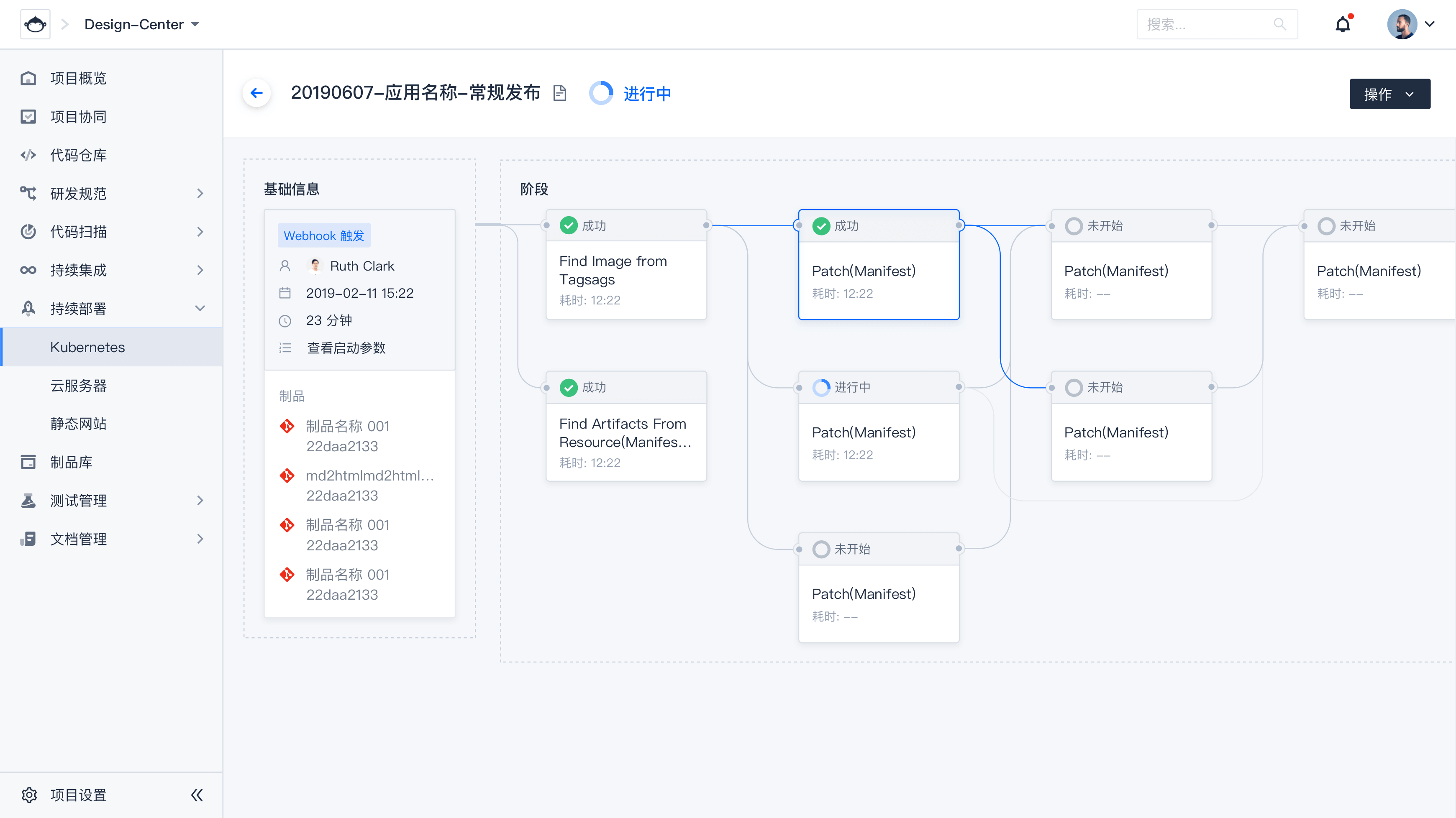 发布流程将持续部署流水线化,可以方便的组织起多微服务应用在多个不同集群环境的发布流程控制、过程预编排、错误回退等能力。