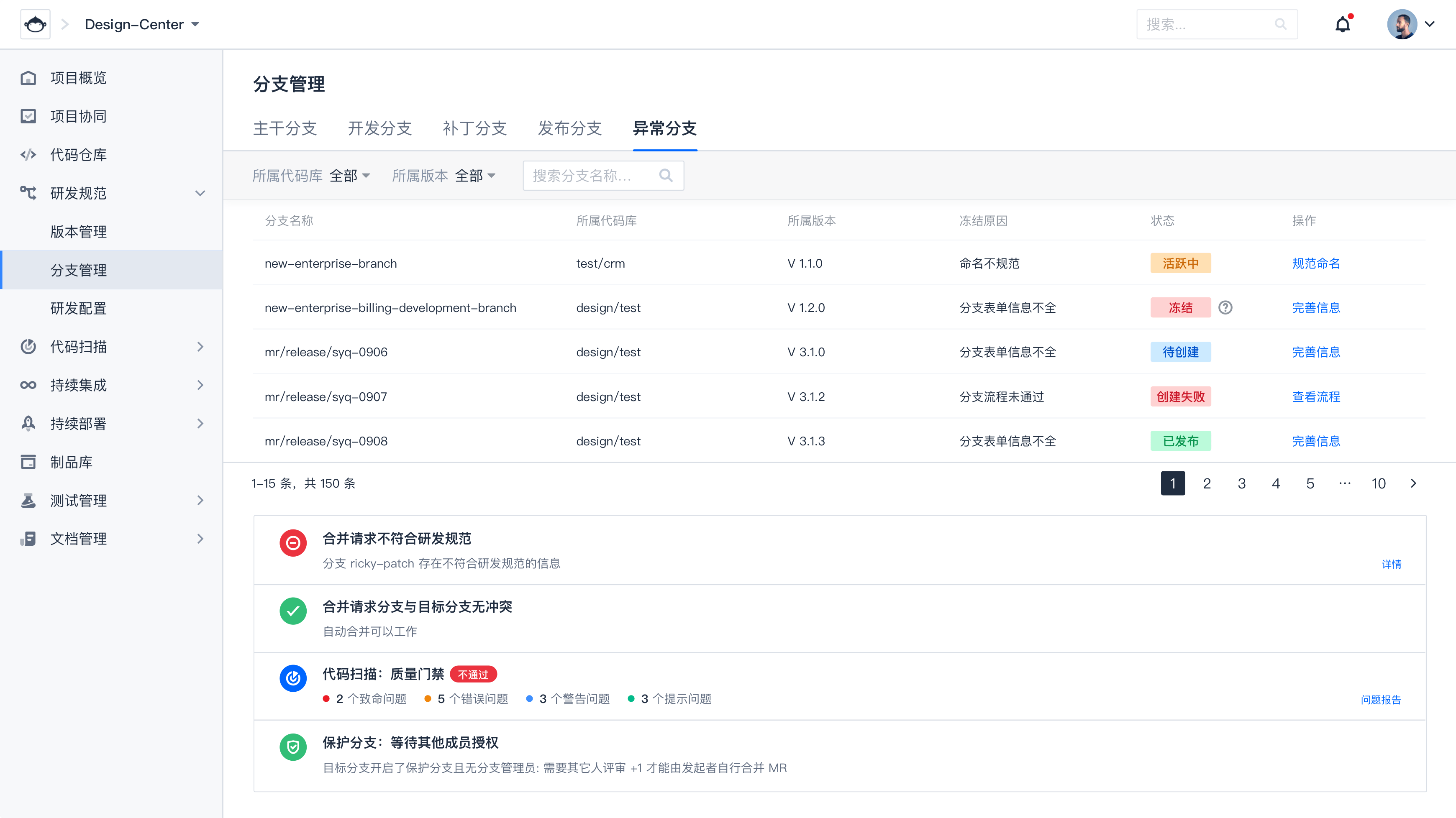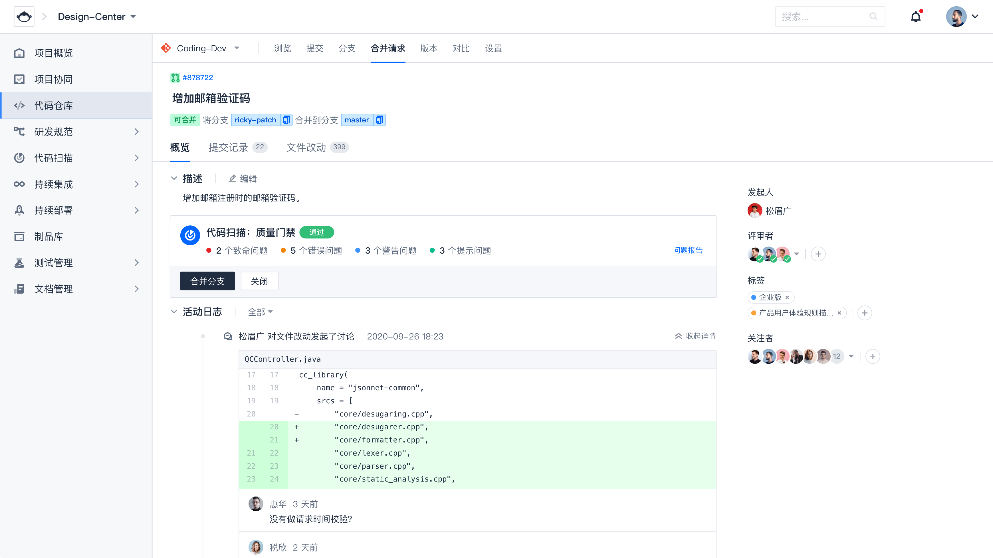 配置最佳研发工作流,即时跟踪代码提交情况多方位的管理特性,保障代码开发质量