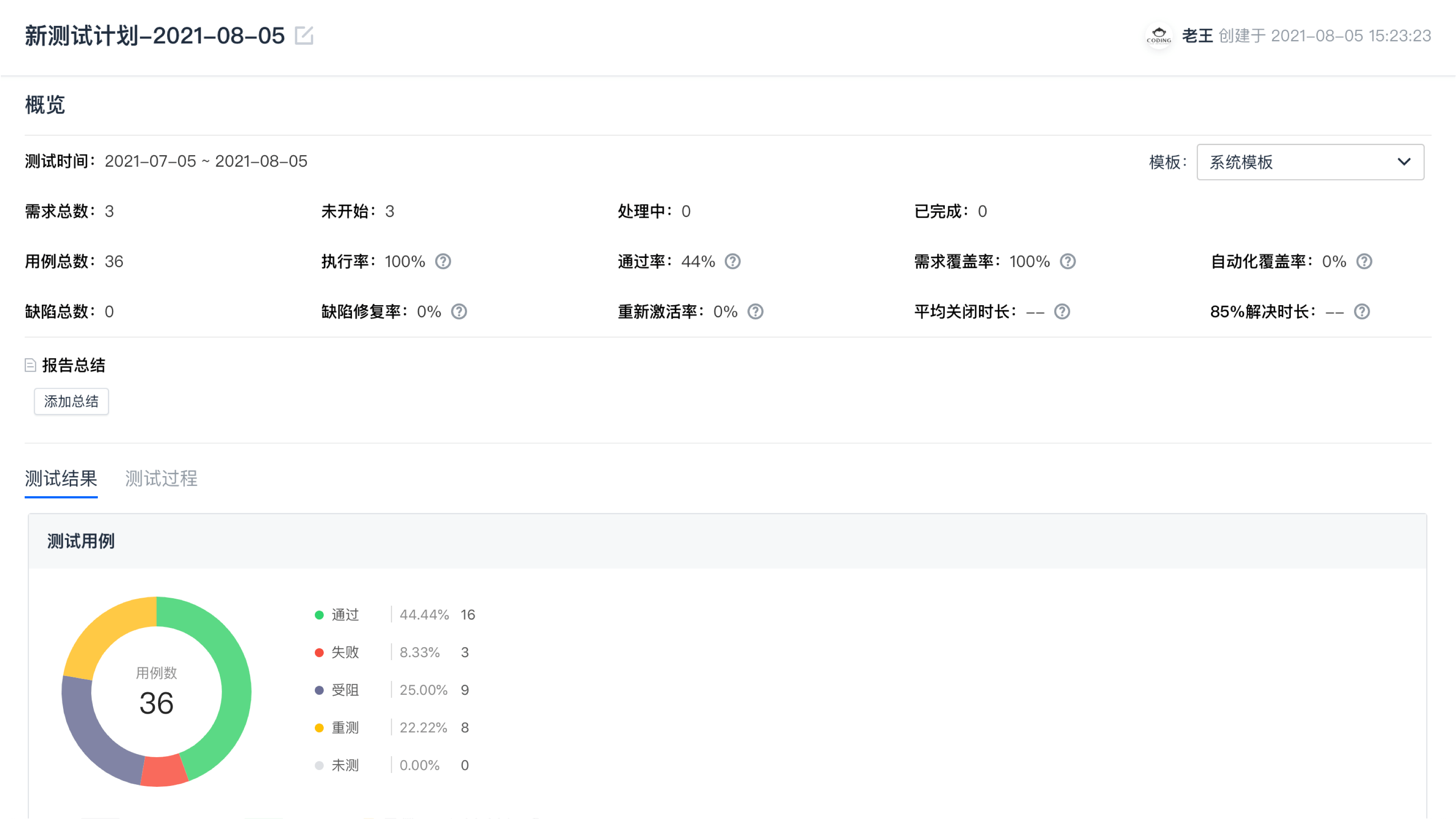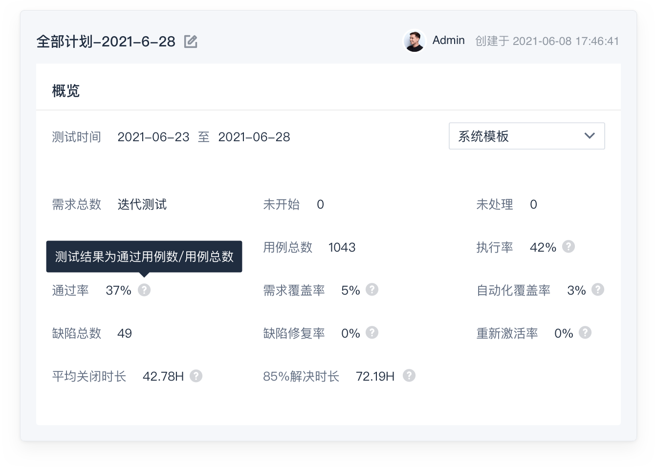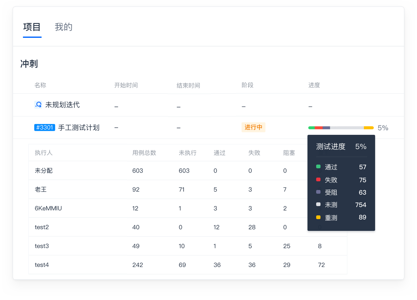 从团队维度展示测试工作流,掌握当前进度,帮助管理者识别当前瓶颈,做好风险管控。