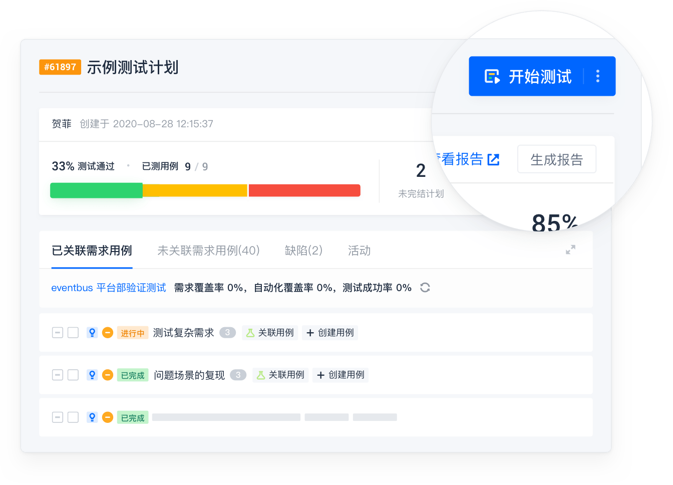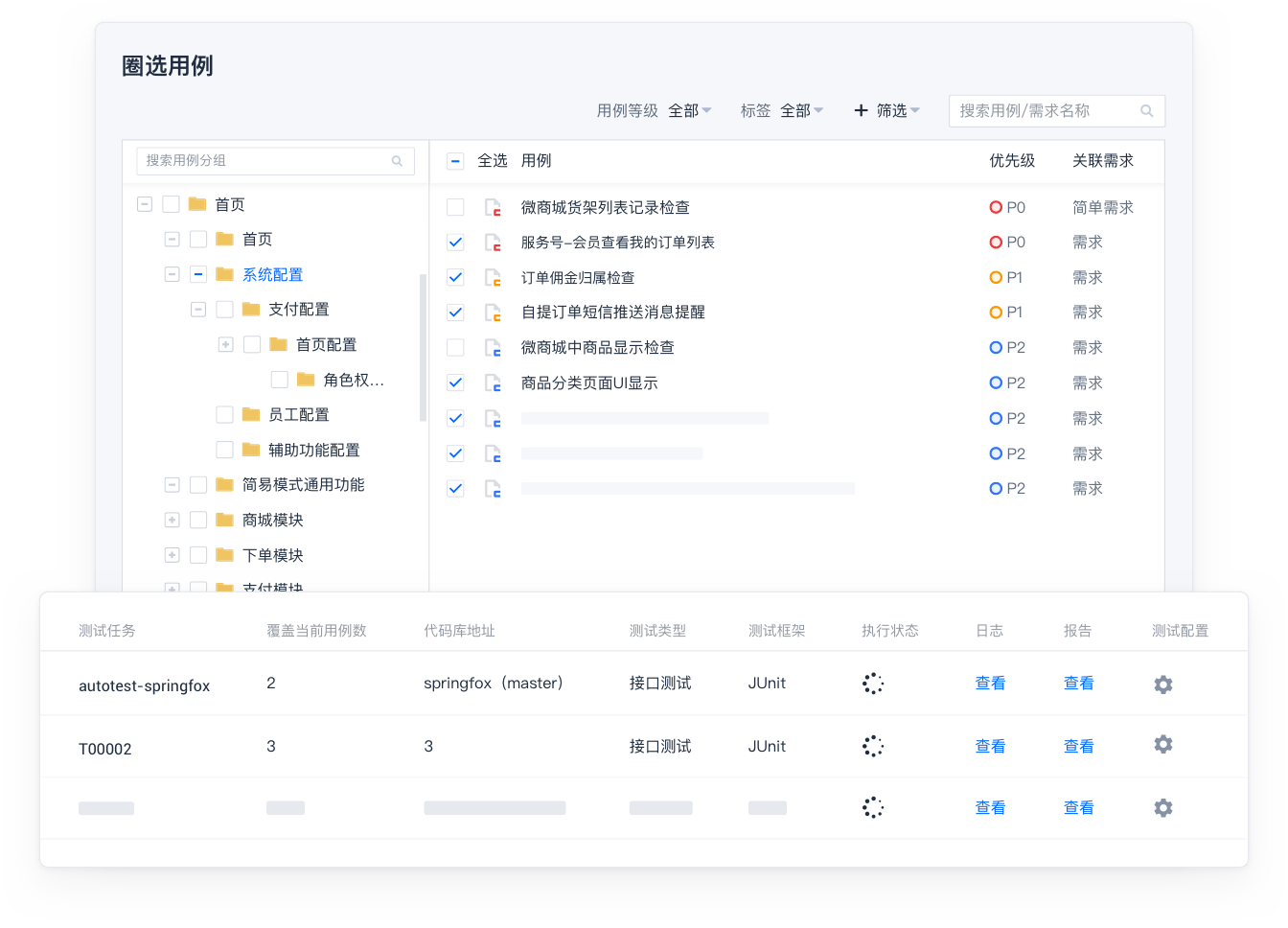 关联功能测试和自动化测试用例,充分利用自动化能力减少手工操作;还可以精准执行用例子集,不必每次都跑全量用例,加快测试执行效率。